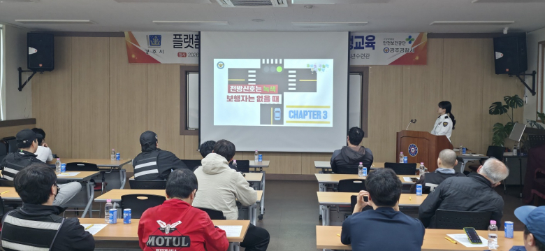 경주경찰서(서장 양순봉)는 지난 15일 경주시 청소년수련관에서 관내 이륜차 배달종사자를 대상으로 교통안전 교육을 실시했다. 이번 교육은 배달 서비스 증가로 이륜차 사고 위험이 높아짐에 따라 마련됐으며, 총 2회에 걸쳐 약 40명을 대상으로 진행됐다. 경주경찰서 교통과 경찰관이 강사로 나서 실제 사고 및 단속 사례 중심 교육을 실시했다. 특히 ▲안전모 미착용 ▲인도 주행 ▲신호위반 ▲번호판 미부착 및 훼손 ▲중앙선 침범과 무리한 추월 등 배달 현장에서 빈번히 발생하는 위반행위를 중심으로 사고 위험성을 설명했다. 또한 최근 강화된 약물운전 처벌과 관련해 정상적인 운전이 어려운 상태에서의 운전은 형사처벌 대상이 될 수 있음을 설명하며 경각심을 높였다. 아울러 교차로 우회전 시 보행자 보호 의무 등 올바른 우회전 통행방법을 교육하며, 보행자 신호 시 일시정지 등 기본적인 교통법규 준수의 중요성도 함께 강조했다. 양순봉 경찰서장은 “이륜차 교통사고 예방을 위해서는 무엇보다 기본적인 교통법규 준수와 안전운전이 중요하다”며 “앞으로도 맞춤형 교통안전 교육과 홍보를 통해 안전한 교통문화 정착에 힘쓰겠다”고 밝혔다.