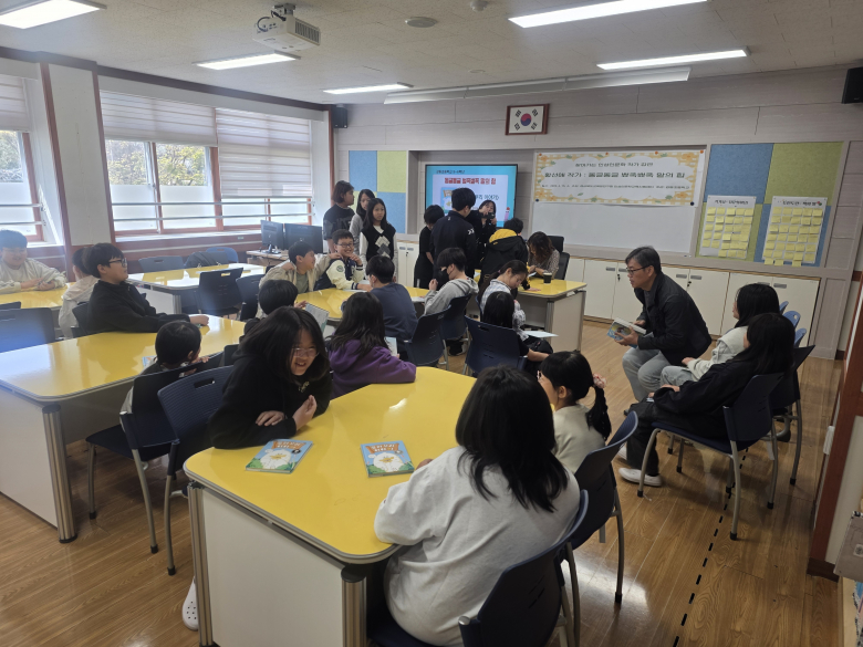 강동초등학교(교장 박영국) 2026년 4월 15일 경상북도교육청연구원이 주최하고 강동초등학교가 주관하는 ‘찾아가는 인성인문학 작가 강연회’를 개최하였다. 3~6학년 학생들을 대상으로 한 ‘오리 부리 이야기’ 동화를 쓴 황선애 작가의 ‘동글동글 뾰족뾰족 말의 힘’이라는 주제의 인성인문학 강연을 통해 학생들의 마음 성장과 문해력 신장을 이끌어 내었다. 3~6학년 학생들은 작가 강연회를 기대하며 일주일 전부터 아침활동 시간을 활용하여 도서관에 다함께 모여 ‘오리부리 이야기’ 책을 소리내어 돌아가며 읽기를 하였고, 마음을 울리는 문장 찾기와 독서 질문 만들기 등 다양한 사전 독서 활동을 실시하였다. 황선애 작가는 어릴 적 쓴 일기를 소개하며 일기쓰기나 기록하는 의미와 등장인물들이 했던 말로 뾰족뾰족 말과 동글동글 말의 힘에 대해 얘기해 주었다. 또, 학생들의 작품에 대한 다양한 질문들에 작가로서 생생한 답을 해주었고 33명 모든 학생들에게 작가 사인도 해주었다. 강연회에 참여한 3학년 김00 학생은 “오리 부리 이야기 책 작가님을 만나서 신기했고 동글동글한 말을 해야겠다고 생각했다”며 “앞으로 작가님의 책을 더 읽고 싶고 도서관에서 책을 많이 빌려 읽고 일기쓰기도 즐겁게 하고 싶다.”라고 소감을 밝혔다.학교 업무담당자는 “경상북도교육청연구원의 좋은 프로그램 덕분에 동화 작가님을 모시고 작품에 대한 이야기를 직접 듣고 아이들에게 동화를 사랑하는 마음과 작가라는 직업에 대한 호기심을 높일 수 있었고 앞으로도 좋은 독서 활동 프로그램을 진행해 나갈 계획” 이라고 밝혔다.
