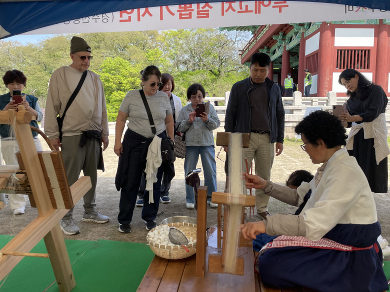 국가유산청과 경상북도, 경주시가 주최하고 (사)경북문화관광진흥원이 주관한 ‘한복으로 소통하는 한국衣멋 경주衣미’ 프로그램이 지난 18일부터 19일까지 양일간 월정교 일원에서 성황리에 개최됐다.이번 행사는 국가유산청이 아리랑, 김치 담그기, 한복 생활 등 23개 종목을 대상으로 추진 중인 ‘2026 전승공동체 활성화 지원 사업’의 일환으로 마련됐다. 무형유산의 지속 가능한 전승 기반을 마련하고, 지역민과 관광객이 일상 속에서 한복 문화를 자연스럽게 향유하도록 돕는 것이 목적이다.행사 기간 동안 월정교를 찾은 가족, 연인, 외국인 관광객 등 500여 명의 참가자들은 단순한 관람을 넘어 한복을 매개로 한 소통의 시간을 가졌다. 참가자들은 ▲한복 상식 미션 수행 ▲월정교 배경 한복 착용 사진 촬영 ▲개인별 퍼스널 컬러에 맞는 한복 매칭 등 현대적 감각을 더한 다양한 체험에 참여했다.특히 지역적 특색을 살린 ‘경주시전통명주관’의 누에고치 실뽑기 시연은 한복의 원료가 되는 명주의 제작 과정을 직접 눈으로 확인하게 함으로써 관람객들의 큰 호응을 얻었다. 또한 현장에서 찍은 사진을 활용한 한복 포토 달력과 한복 방향제 만들기 등은 실용적인 기념품으로서 만족도를 높였다.행사를 주관한 (사)경북문화관광진흥원 양형 대표는 “이번 행사를 통해 우리 한복의 아름다움을 널리 알리는 계기가 되었다”며 “앞으로도 경주가 국내외 관광객들이 한복을 입고 머물며 즐기기 가장 좋은 도시로 거듭날 수 있도록 노력을 기울이겠다”고 전했다.한편, (사)경북문화관광진흥원은 이번 행사를 시작으로 한복 문화를 일상화하기 위한 후속 사업에도 박차를 가한다. 주요 프로그램으로는 ▲한땀 한땀 한복교실 ▲장롱에서 리폼, 일상에서 리뽐 ▲한복 살롱 & 포토 스튜디오 등이 운영될 예정이다.해당 프로그램에 대한 자세한 참여 문의는 (사)경북문화관광진흥원(054-774-0114)으로 하면 된다.